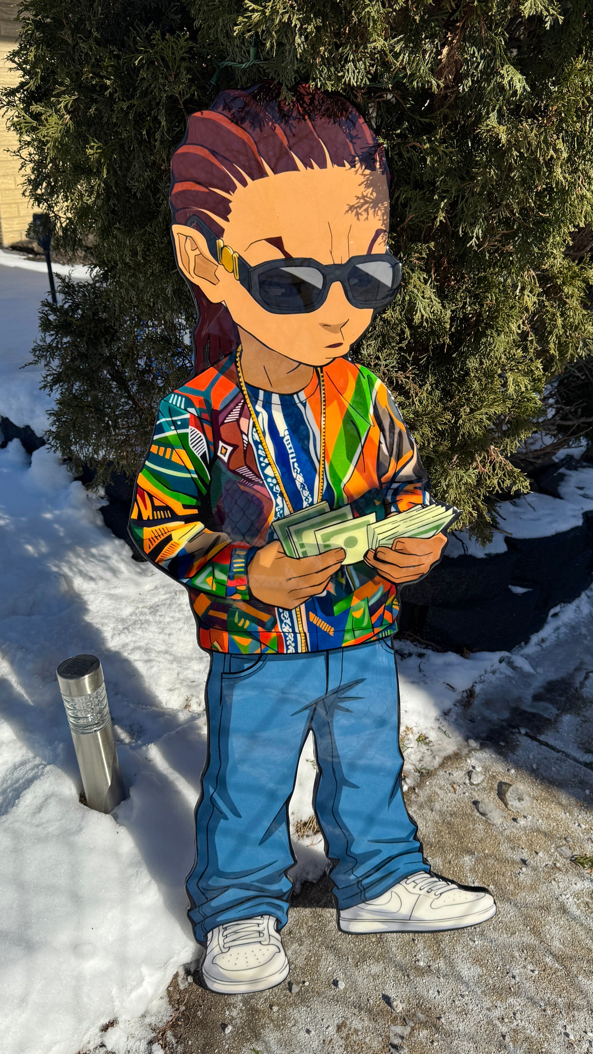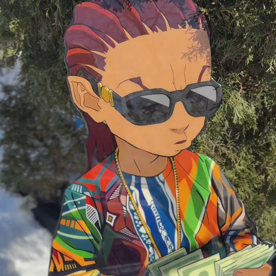 Handcrafted wood cutout with an epoxy finish.